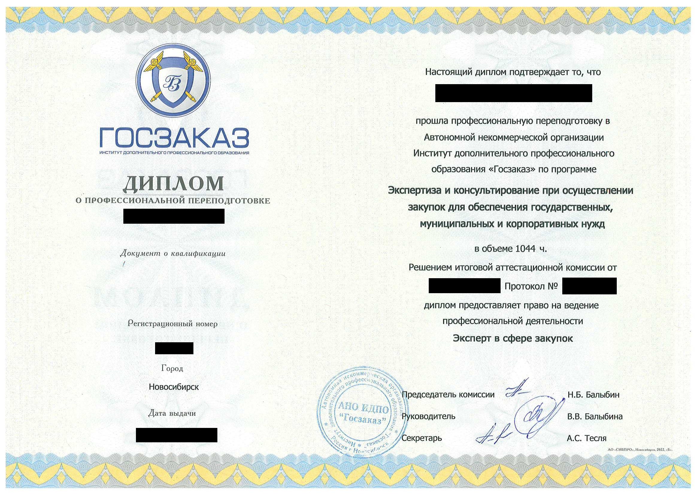 • Диплом о профессиональной переподготовке установленного образца. Срок действия: бессрочно